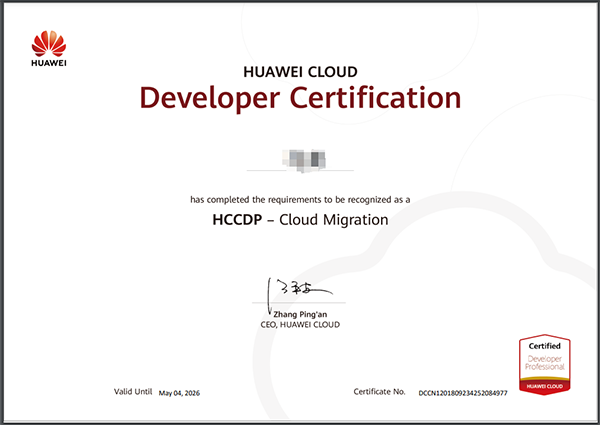 经过培训赋能和考试认证,Trust科技技术华为云事业部已有18人获取华为云开发者-云迁移HCDDP-Cloud Migration证书。